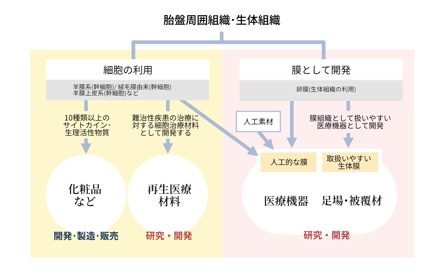 わたしたちは、大きな可能性を秘めた生体材料である胎盤周囲組織・生体組織の安全性を担保し有効性を検証するために、各事業に取り組んでいます。